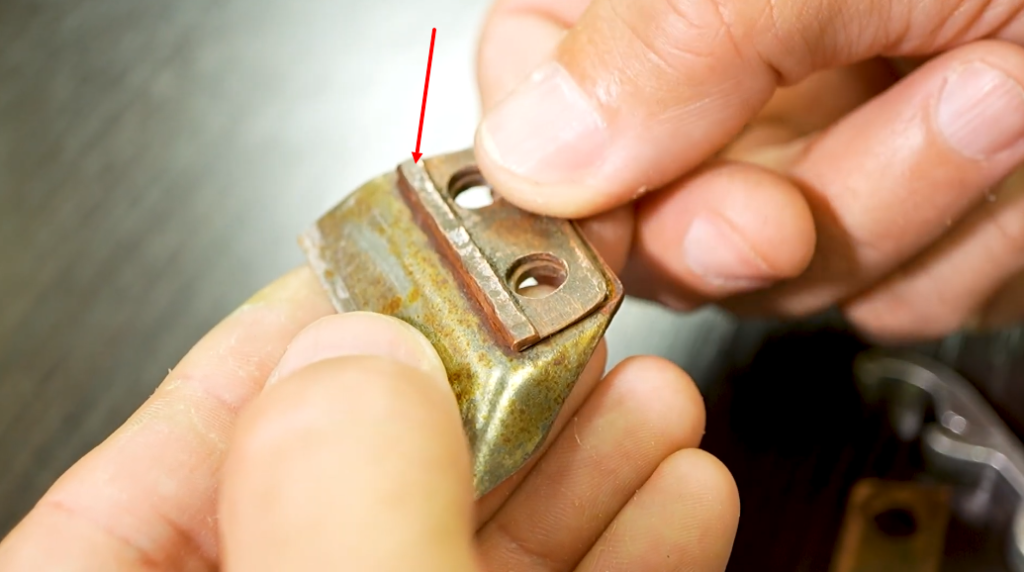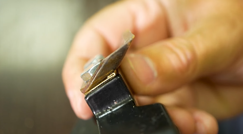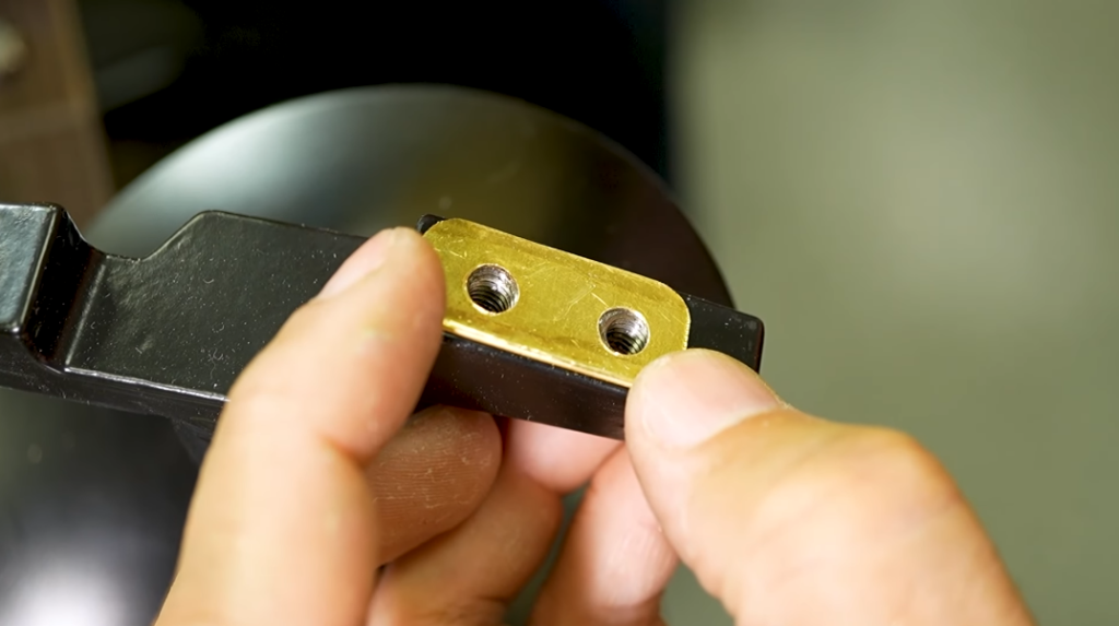 Суть в том, что мы на прокладочках один край металла просто подгибается и становится в два раза толще. А за счёт этого, когда мы прокладку под ножик подкладываем, мы меняем угол наклона.