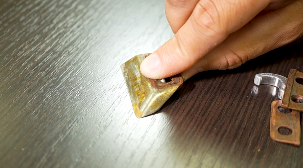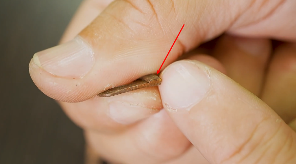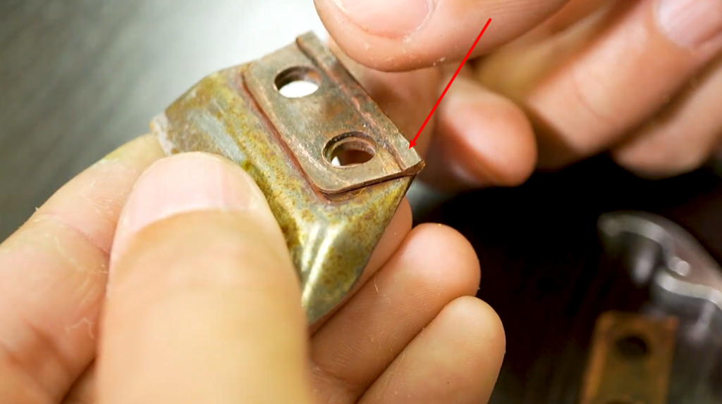 Основная задача — это чтобы вот этот подгиб не выходил за границы опорной площадки. То есть, если вдруг он у вас выходит, то надо смещать линию загиба ближе к центру. Остаётся только ещё закруглить края, чтобы не оцарапать пальцы, и обработать напильником от заусенцев.