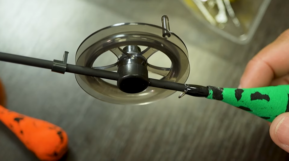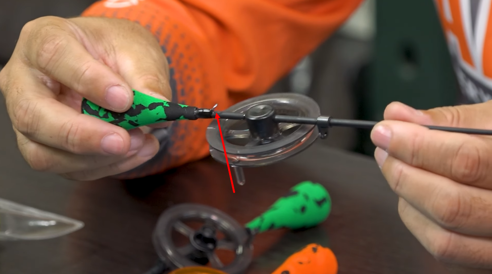 Катушка — максимально главное конструктивное изменение. Катушка закреплена на самом хлысте, здесь нет никаких дополнительных элементов, которые могут быть ненадёжны и могут добавлять лишний вес удочке, здесь их нет, она практически находится максимально близко к хлысту, и таким образом вес самой конструкции минимален.