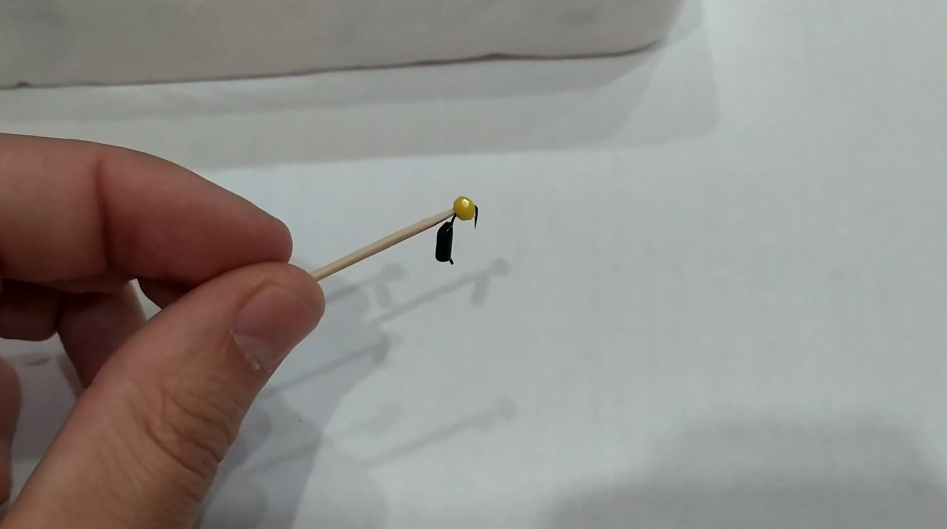 И первое место лидирует у меня вот такой вот гвоздик с шариком-многогранником жёлтого цвета. Ловит в двух вариантах: с лыской и без лыски. У меня на вольфрамовых телах крючки «Varivas» японские. В общем, любых он хорошо ловит многогранник — это вообще самое первое по рыбе, что есть.