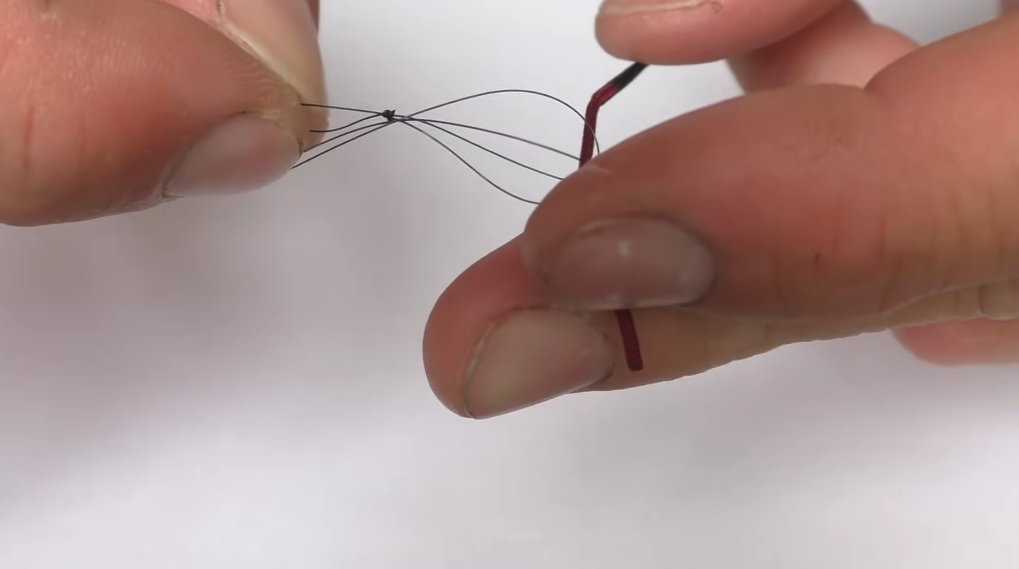 Теперь нужно подготовить петельку на самой оснастке, она будет немного отличаться от той петельки, которую я использовал при классическом коннекторе, и здесь есть небольшая хитрость для того, чтобы саму оснастку потом было легче снимать с этого шнурка.
