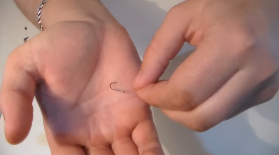 Теперь ко второму колечку нашего вертлюжка мы надеваем наш поводок. Поводок я беру из флюорокарбоновой лески диаметром 0,16 длиной примерно 3 см, и крючок мы уже подбираем под наш размер рыбы, в данном случае я взял крючок на леща.