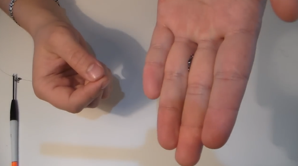 Теперь берём конец лески и надеваем наше грузило, грузило я всегда беру такое, чтобы полностью топило наш поплавок, так как я ловлю со дна, а не с полводы.