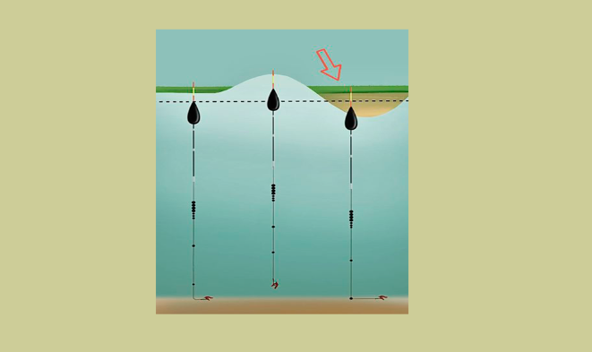Дальше расскажу о системе огрузки поплавка, это очень важный параметр, который в сочетании с первым, то есть с размером поплавка, позволит вам очень эффективно рыбачить в волнительную погоду. Если опираться на то, как правильно выставить глубину, то я для рыбалки во время волны однозначно рекомендовал бы выбрать третий вариант, то есть донный вариант выставлению глубины.