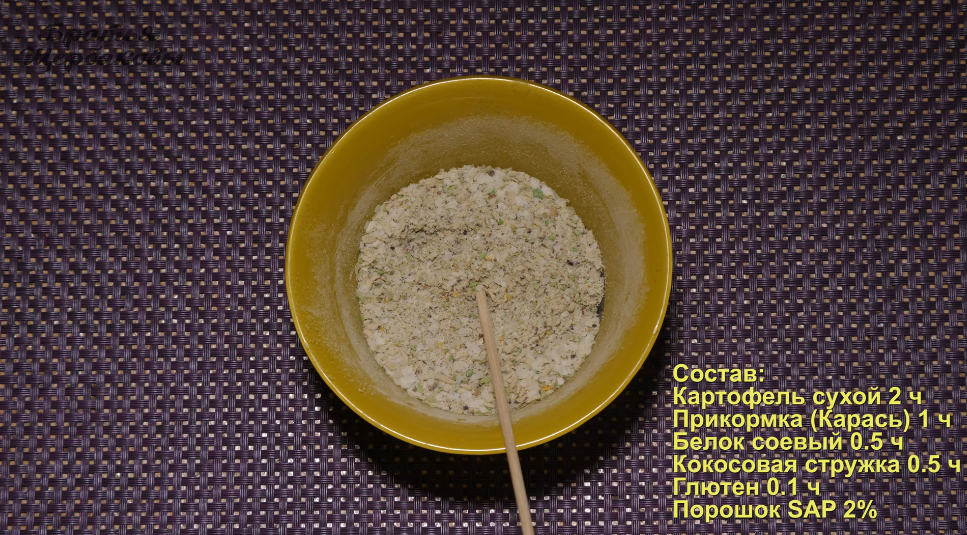 Теперь дело за малым. Нужно уже именно под свойства полиакрилата натрия подобрать более подходящей состав теста. В него обязательно нужно вносить ароматику, сублимированных креветок, червей, мотылей или моллюсков.