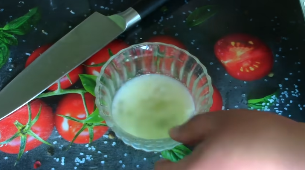 Итак, у нас получился белок, берем две чайных ложки молока либо одну столовую, добавляем в емкость с белком, это для того, чтобы немного разжижить белок.