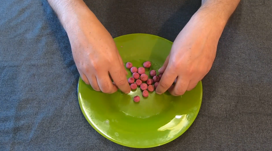 Поэтому делать надо так: кладем бойлы в тарелочку и помещаем в печь и ставим где-то на минутку, минутка прошла — даем остыть до примерно чтобы рука держала, и так повторяем до состояния, чтобы, когда кидаешь их на тарелку, они звенели — это важно.