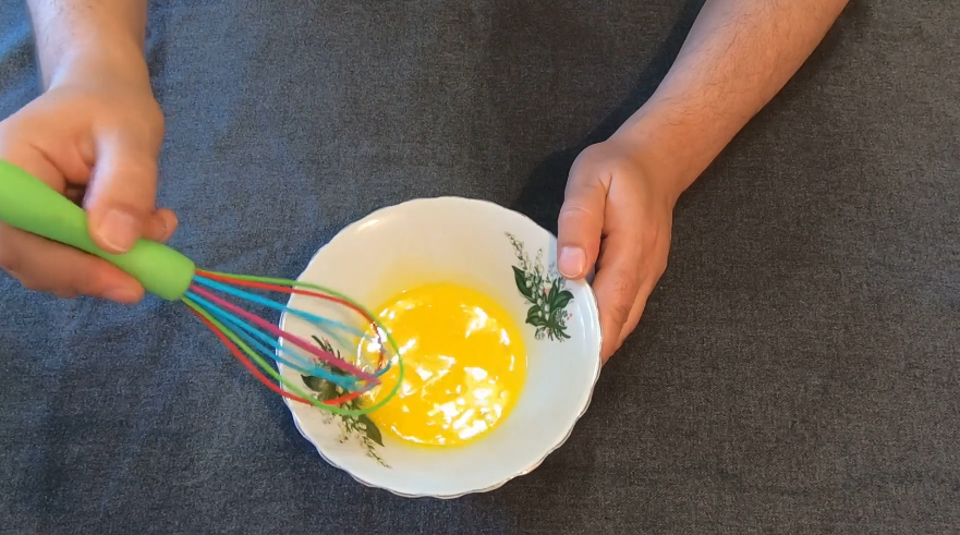 Второе, что нам нужно, это мука ржаная или мука пшеничная, я использую муку ржаную, потому что там есть отруби, все-таки будет лучше.Третье, нам нужно одно яйцо, хорошо его взбить до однородной массы для связывания вот этих материалов: кукурузной муки и муки ржаной.