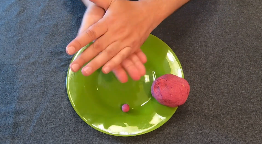 Теперь всё хорошенько размешиваем, размешиваем до состояния теста. Вот у нас получился такой хороший колобочек с фиолетовым цветом, он очень плотный.