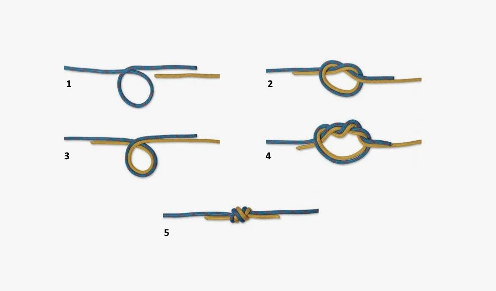 И теперь, нам нужно связать леску и резинку вместе, делаем самый простой и самый крепкий узел.