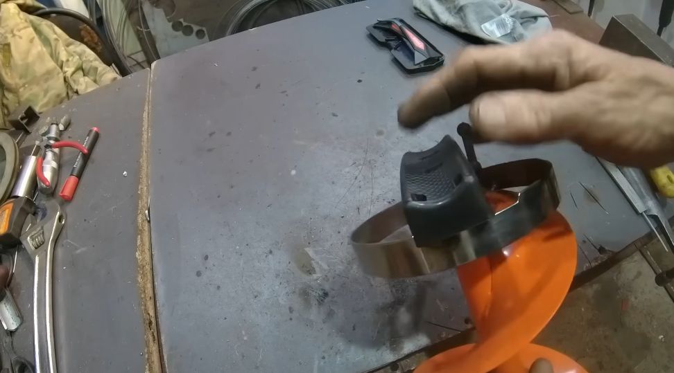 Ленту привариваем двумя точками с одной стороны, с другой стороны кольцо заподлицо с площадкой, заводской диаметр не изменился.