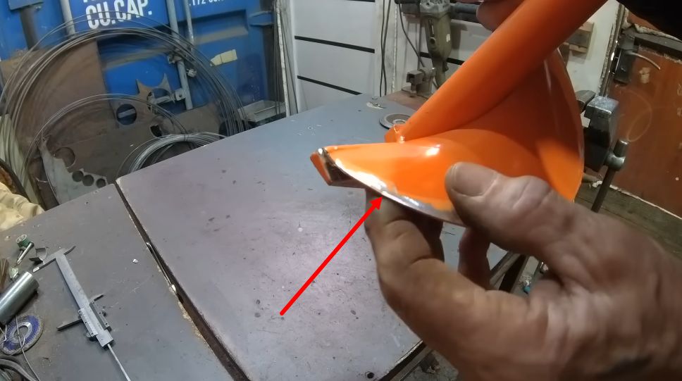 Теперь нужно сточить ленту в месте примыкания к установочной площадке на толщину кольца. Вот эту часть ленты, её нужно подгонять по месту при установке кольца. На одних шнеках приходится срезать до 2 мм, а на других в этом необходимости практически нет.