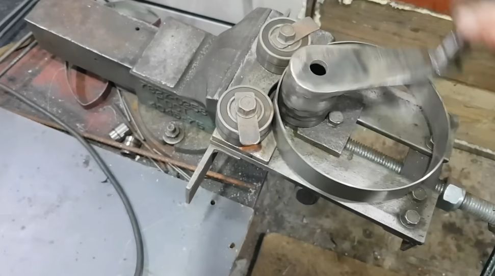 Размер трубы лучше брать немного меньше требуемого, разгибая кольцо, получим деталь, нежели наоборот, с большего делать меньше.