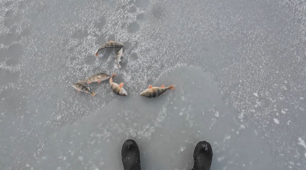 С этой лунки было поймано 6 окуней, пошел искать другую, в этой поклевки прекратились, но свое  я взял.