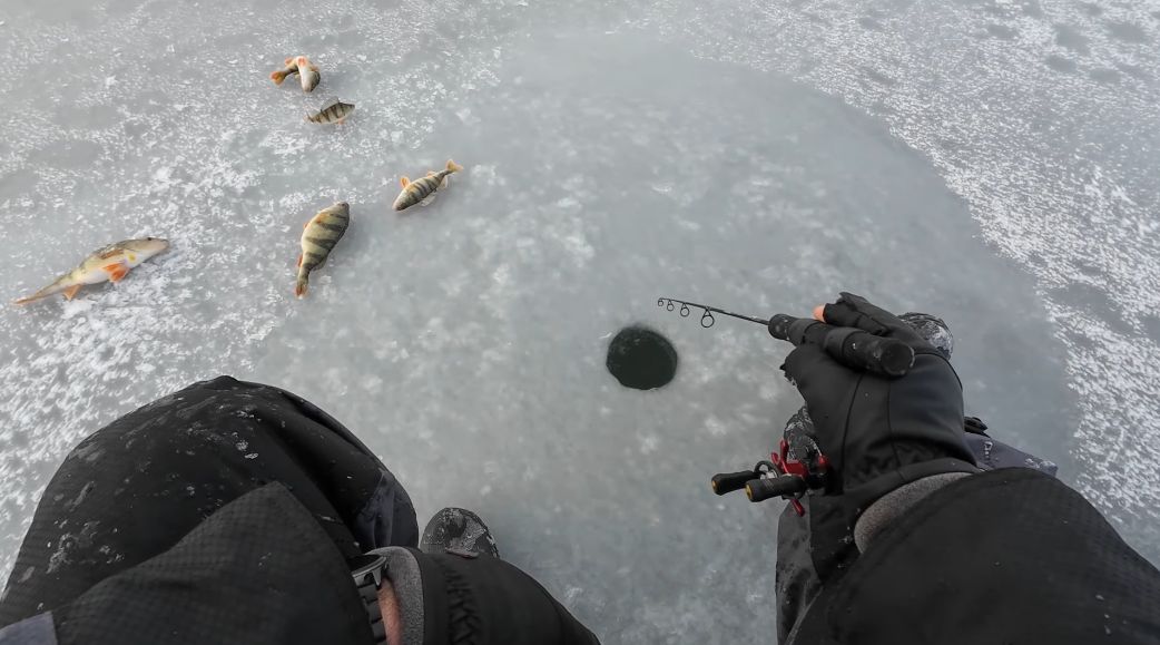 Вторая лунка не менее интересная, попадаются хорошие. Ловить таких одно удовольствие.