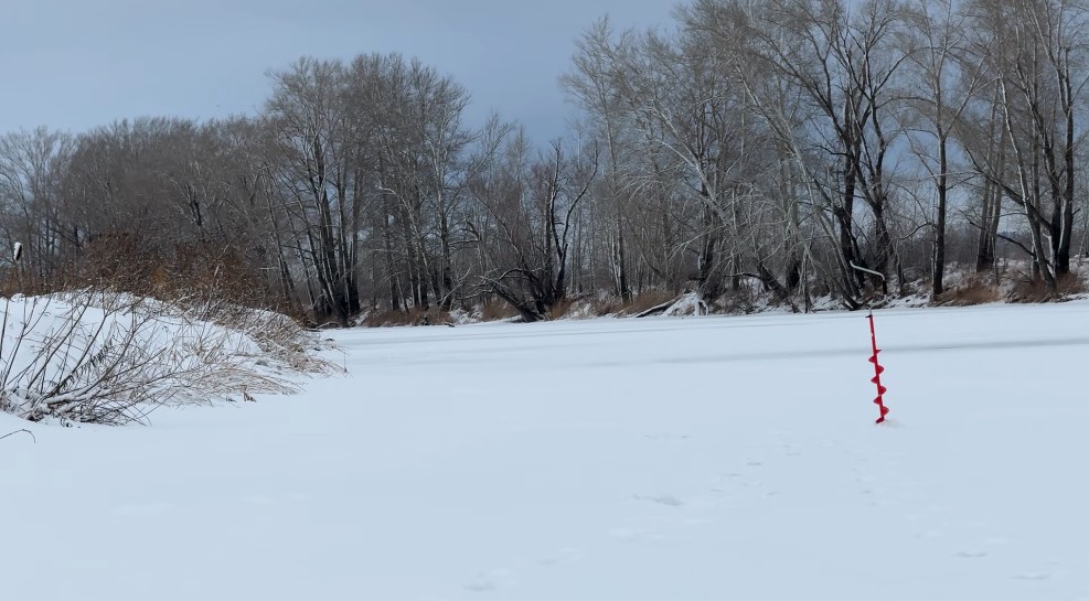 Пробурил недалеко от берега дорожку из 5 лунок, по жидкой воде здесь попадался мне окунь, и даже крупный влетал.