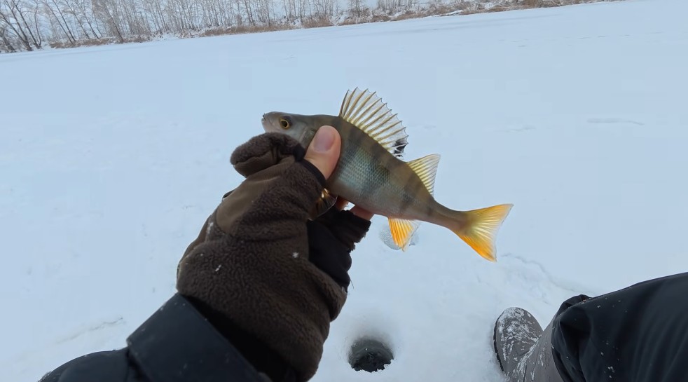 Пока первый лед, окунь активный, надо пользоваться моментом и ловить его на активные приманки. Глубина где-то 2,5 метра, есть обрывистый бережок. Я раньше никогда не пробовал здесь ловить окуня целенаправленно, тем более на блесну с балансиром, это сегодня первый опыт.