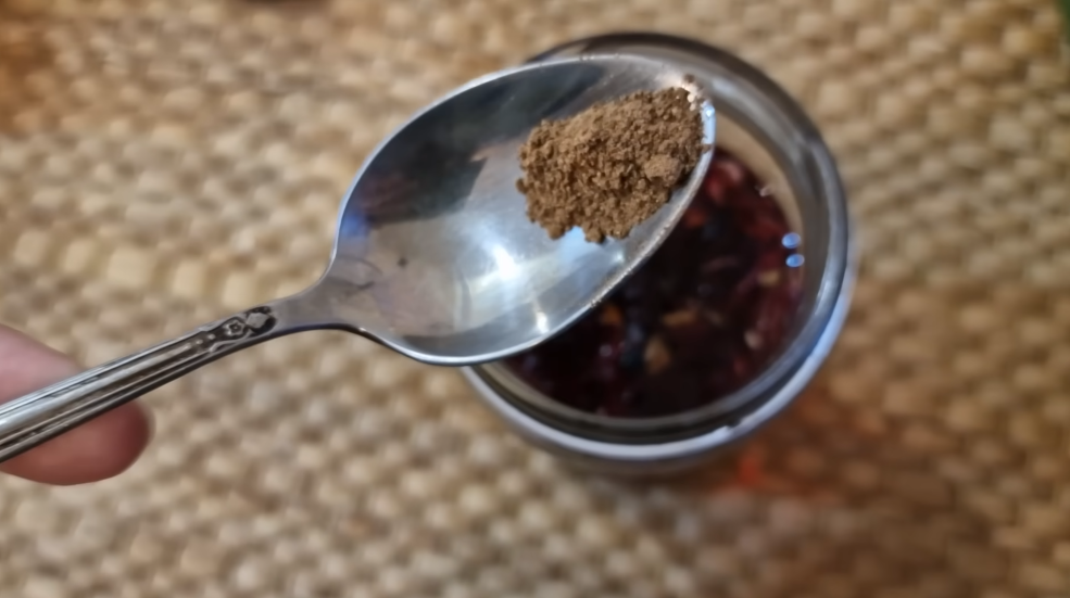 И на вот такую небольшую баночку я беру самую обычную корицу, буквально треть чайной ложки.