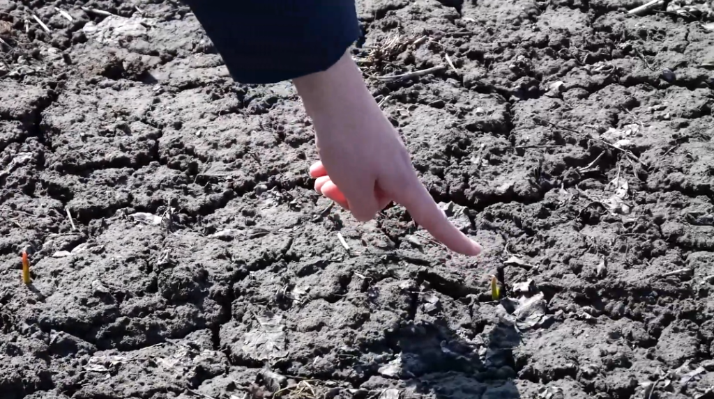 С осени мы садили озимый чеснок, и сейчас он начинает еле-еле вылазить из земли.