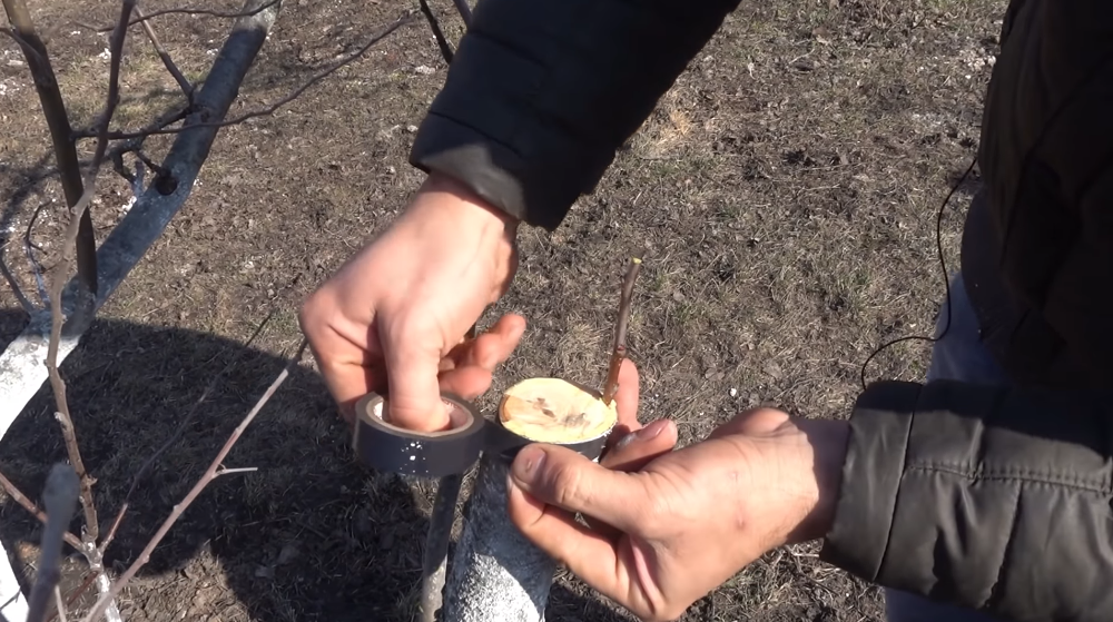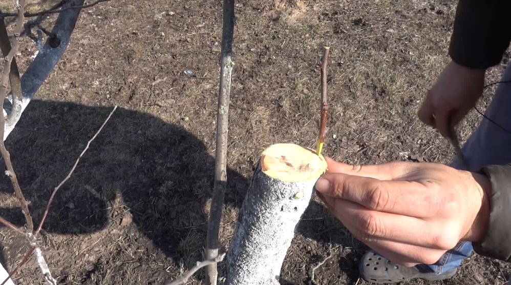 За счет этого острия ваша ветка будет держаться, так она залезет под кору, за счет этого будет держаться, ни ветер, ни птичка ее не сможет отломать. Очень часто бывает, что один год приживается, вроде все нормально, следующий год — она просто отваливается, вот за счет этого среза будет хорошо держаться.