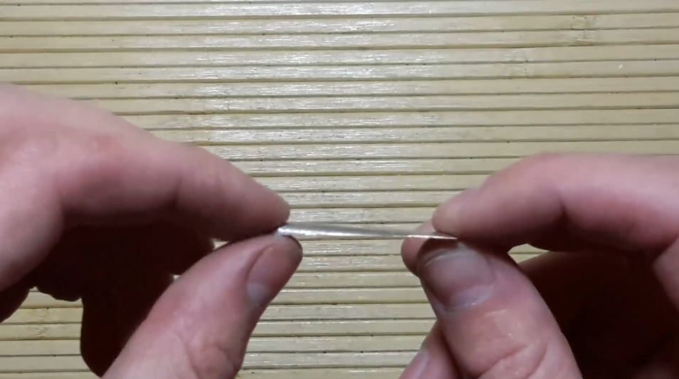 То есть мы сначала паяем нижнее ушко в самой широкой, но тонкой части и чуть-чуть прикрываем его припоем, а потом уже плавненько напаиваем верх. Для данного размера блесны 3 см, в толстой части до 3 мм, в нижней части максимум 1 мм.