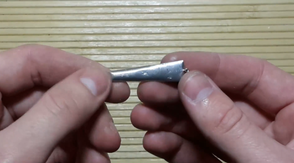 Видно, как пропаялась блесна, в верхней части уже приблизительно 2,5 мм есть, нижняя тонкая часть. То, что нужно.
