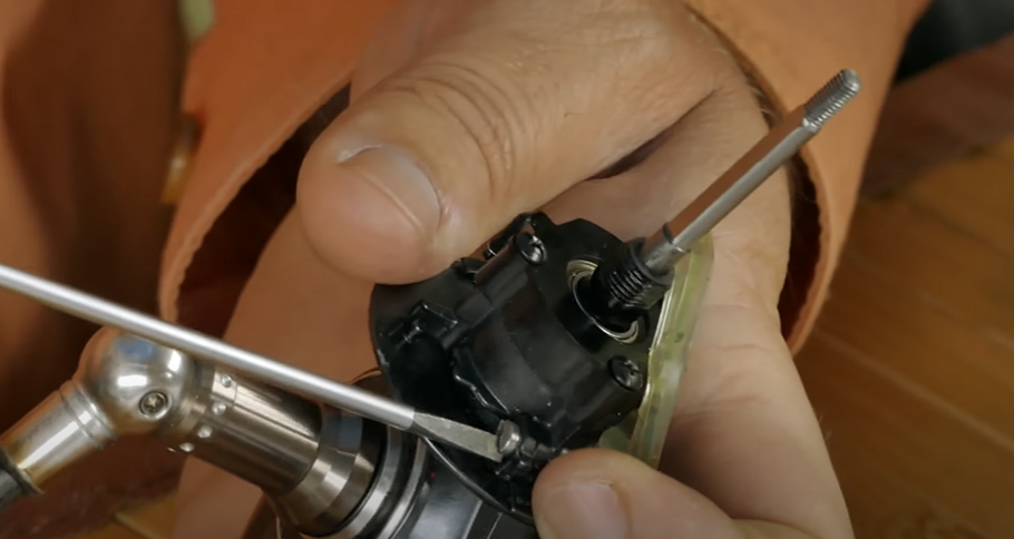 Разбираем кулисную систему с шестерёнками. Эта система отвечает за плавную подачу штока вперед - назад во время вращения катушки.