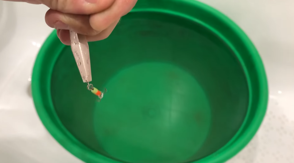 В этом моменте мы делаем паузу, это место мы не заливаем сейчас мы должны дать блесне остыть, и сейчас в этот промежуток мы будем впаивать второй ушко, которое будет нам служить для лески или застежки, кому как удобнее ловить, я предпочитаю напрямую.