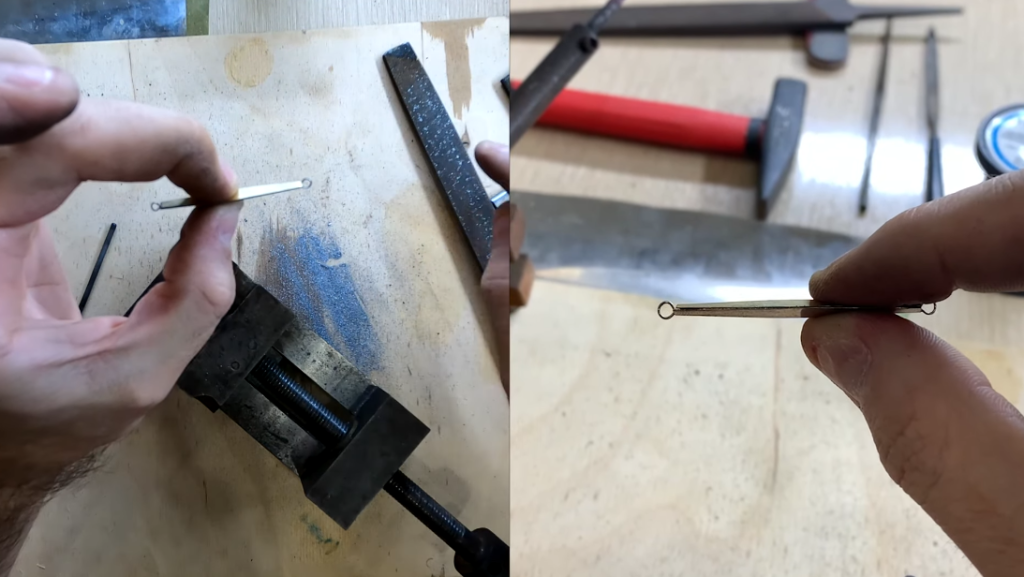 Давайте приступим к лужению и заливки наших коронок, и сразу подготовим ушки, верхнее и нижнее для последующей пайки. Одно ушко я буду использовать большего диаметра, оно будет служить нам под заводное кольцо, одно меньшего диаметра, оно будет служить нам под леску. Ушки вы можете использовать от обычных рыболовных крючков, откусить их кусачками и в дальнейшем припаять.