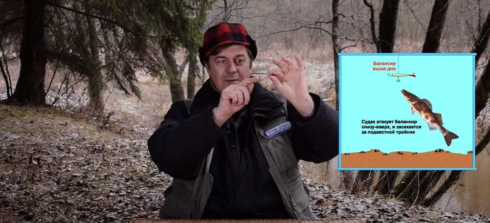 И, соответственно, если рыболов предпочитает работать балансиром на каком-то расстоянии от дна, то суда, как правило, подходит к балансиру по дну и потом начинает выходить уже на атаку снизу вверх. И, соответственно, большинство хваток будет именно за нижний подвесной крючок.