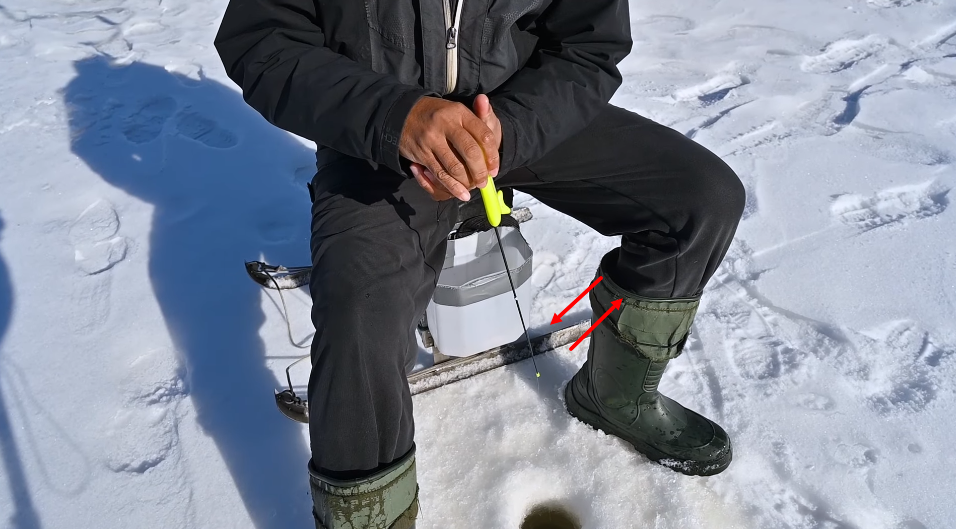 Глубину настраиваем таким образом, чтобы вам было удобно держать удочку. То есть, если вы сидите или рыбачите стоя и в каком положении вам удобно держать удочку, кладете блесну на дно и в примерно в 15 - 20 сантиметров от дна будет происходить ловля.