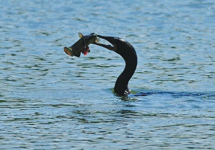С небольших лодок или плотов рыбаки погружают в спокойные воды до десятка птиц за рыбой, у которых затем из пасти достают по отдельности или, скопившихся в глотке птицы, по нескольку. Шейное кольцо, сужающее пищевод, позволяет им только глотать мелкую рыбу или, в качестве награды и поощрения, кусочки рыбы. Поводок, иногда прикрепленный к этому кольцу шеи, иногда к ноге, ведет либо к плавательному телу (в Китае), либо к руке рыбака (в Японии). К особому навыку ловли рыбы была доведена выдра, которая, как и собака, может развивать аналогичную зависимость от людей и загонять рыбу в зону ловли и опускания сетей.