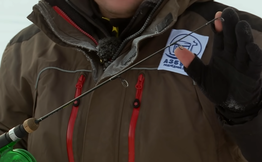 В данном случае у меня классическая судаковая удочка. Её основной плюс - это легкость снасти. Здесь у меня стоит графитовый удильник с графитом хлыстом. Плюс этого хлыста в том, что он обладает очень большой чувствительностью. Как можете увидеть, у меня на конце удочки нет кивка. Дело в том, что графит позволяет нам чувствовать даже самые деликатные поклевки с больших глубин именно в руку, за счет того, что этот материал очень звонкий. И немаловажный момент, чтобы данная удочка была легкая. То есть, если мы сюда повесим тяжелую катушку, гармоничность снасти у нас нарушится и чувствительность также упадёт. Поэтому обязательно облегчаем снасть максимально на сколько это можно. В данном случае у меня пластиковая проводочная картушка. В сумме это снасть весит порядка 30-40 грамм. То есть, я считаю, это очень небольшой вес, и, в общем-то, максимально эффективно используется она в таком варианте.