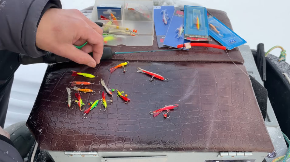 Чаще всего на окуне применяют балансиры 3-5 см. Но поскольку рыба некрупная, соответственно, и балансир подбирается небольших размеров. Пяти сантиметровые балансиры играют намного лучше, чем трёх сантиметровые, но поклёвок на него гораздо реже из-за того, что там просто нет крупного окуня. Поэтому обязательно для окуня нужно подвешивать снизу капельку, это какое-то украшение на нижнем тройничке. И большинство атак происходит именно в этот самый нижний тройник с капелькой.