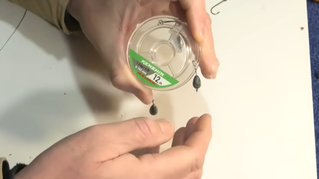 После того как мы привязали два крючка, на самый низ привязываем грузик. Грузики использую смотря каким спиннингом рыбачу, но в основном где-то около 5-6 грамм. Этого достаточно, чтобы правильно сделать проводку этой оснастки.