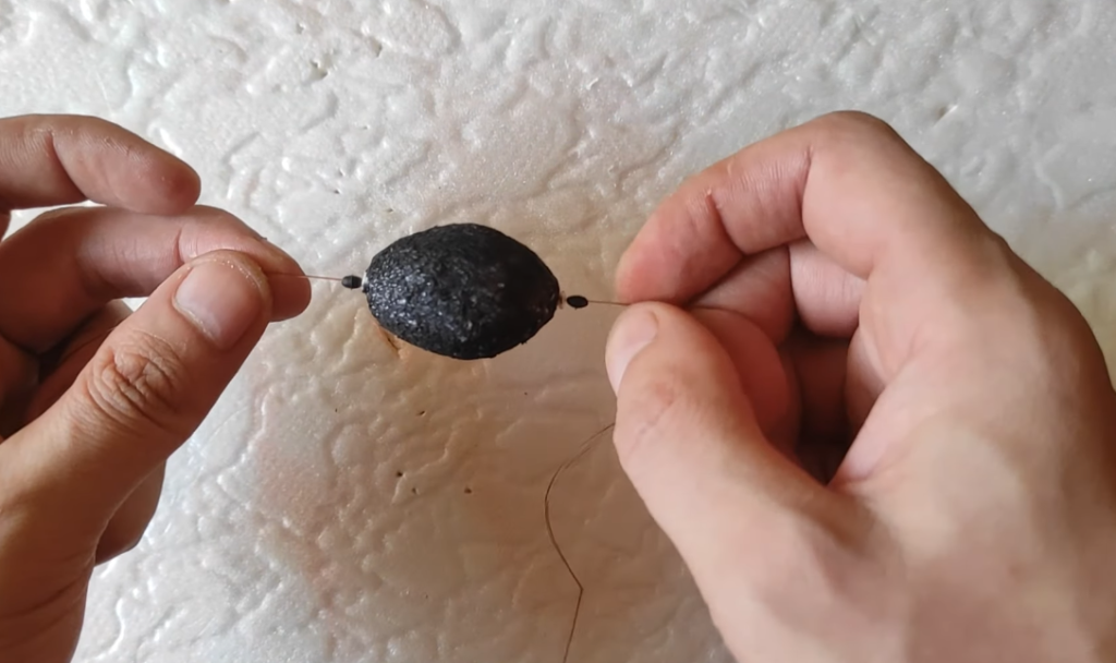 Далее я беру леску 0,35, можете брать толще даже, и беру стопорки. Надеваю стопор на леску, протягиваю далее, и продеваем наш поплавок также на леску и также стопорим его, заводя второй стопор. Вот таким образом застопорили и при помощи этих стопорков мы можем менять высоту нашего живца, поднимая выше или опуская ниже.
