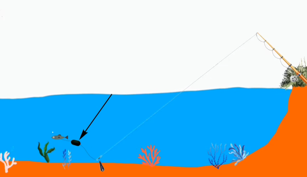 Вот так у нас что получается: идёт крючок с живцом, затем поводок, поводок крепится к леске за вертлюжок, дальше на леске у нас поплавок и далее скользящий грузик.
