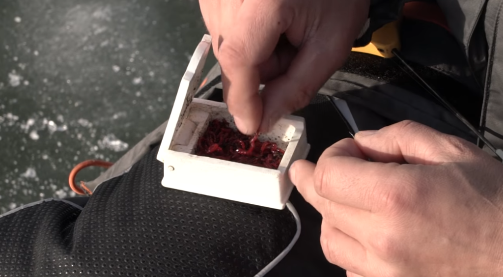 Понятно, что для ловли на мормышку, на поплавочку и на «покаток» нам нужна насадка, то есть мотыль. Зимой мотыль имеет свойство очень быстро замерзать, поэтому очень полезная вещь — это мотыльница, в которой мы храним, собственно говоря, червячков. Мотыльницу мы в запазуху, согревает теплом души своей червячков, иначе червячки замерзают, становятся хрупкие, и никакая рыбка на них уже не клюет.