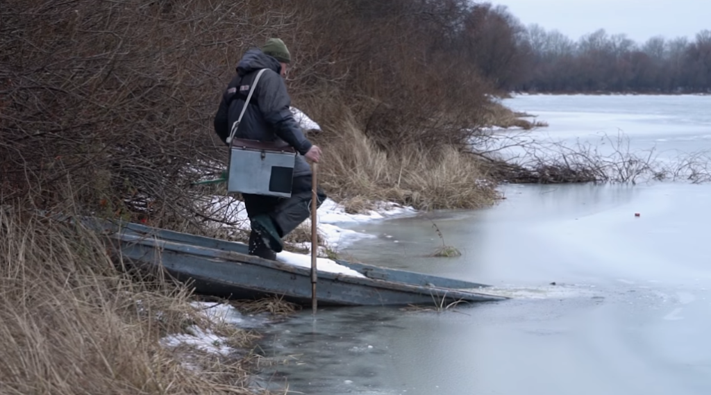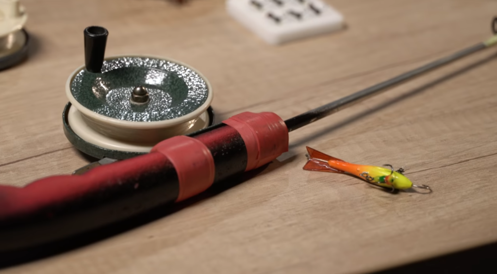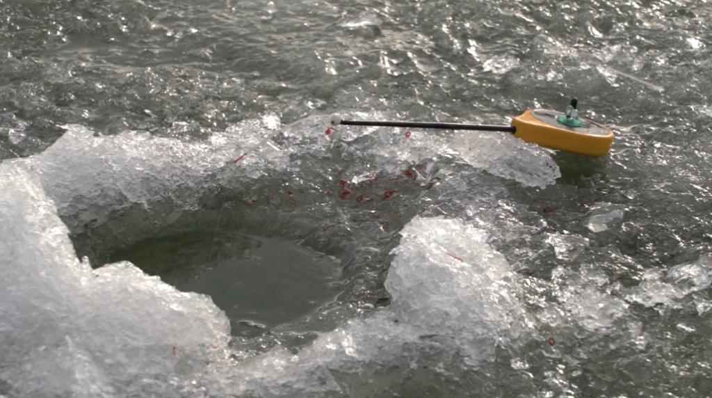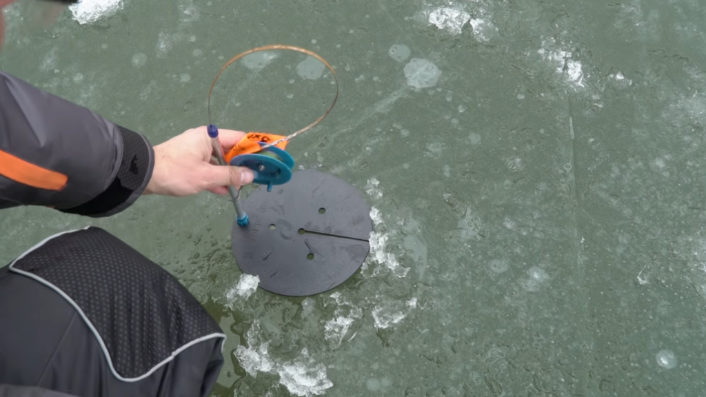 Суть этой ловли в том, что мы гоняемся за рыбой, стая — белая рыба уплывает, поэтому здесь, как правило, самые удобные — это удильники на которые можно намотать леску, то есть у вас рабочая гирлянда, она может занимать там 3–4 метра, и переходить на вытянутых руках — это нереально таскать, то есть когда вот тут бур или пешня еще эхолот, то есть смотал на мотовильце, перешел на следующую лунку, размотал, закинул.