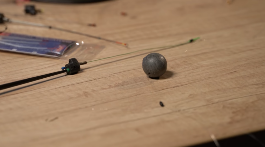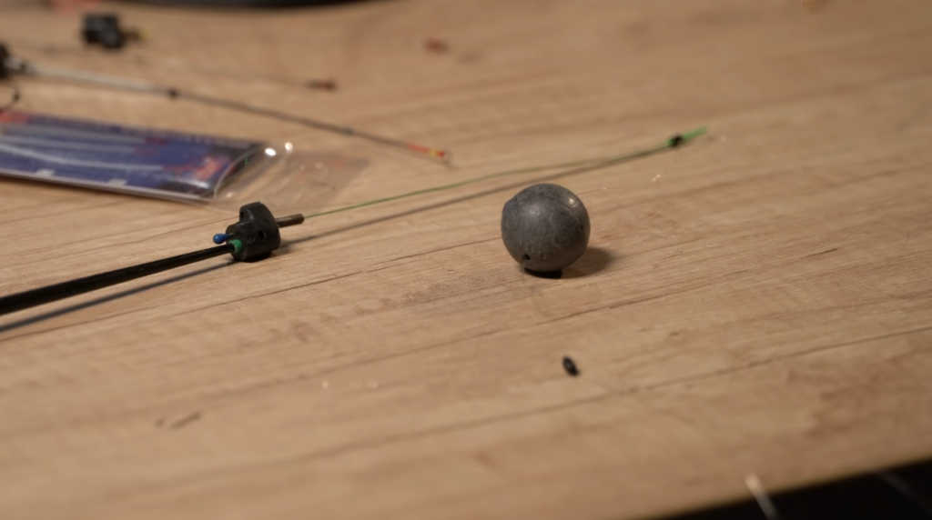 Снасть для ловли на течении здесь понадобится круглый груз-шарик скользящий, вес его подбирается в зависимости от силы течения, то есть, собственно говоря, он может быть и 2, и 3 грамма, и 10, если стопор обычный, что он нам позволяет: был стопор передвигаем, был у нас поводок 20 мм, стал один метр, а когда оснасточка лежит на дне водоема на течении, поводочек растянулся, рыбка приплыла и, не чувствуя веса нашего груза, клюет, и мы подсекаем.
