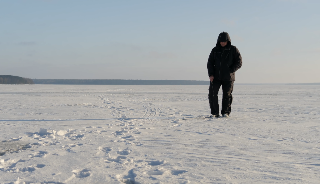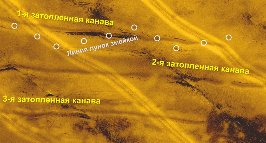 Данное место я изучил еще летом с лодки, тут сравнительно чистое дно и подводные канавы, рыба в данном районе привязана к небольшим участкам именно с самого твердого дна, если поклевок на таких участках сразу не происходит, то можно с высокой вероятностью предположить, что и рыбы тут сейчас нет. Я в быстром темпе проверил около 20 лунок и ни одного контакта с рыбой не увидел.