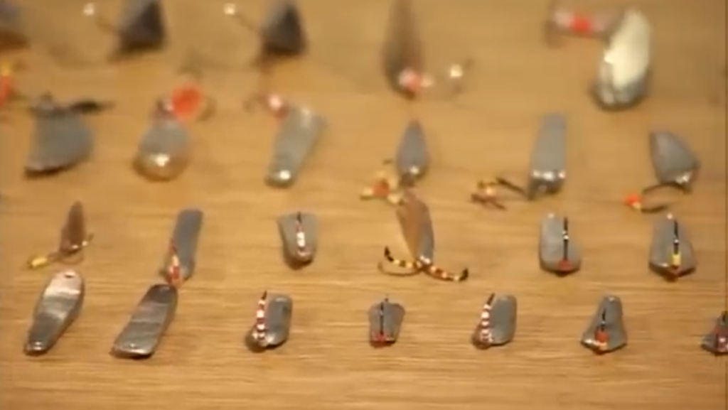 Мы видим на столе большое количество блёсен, и у каждой из этой блесны своя игра, свой почерк. Эти блёсны — это уже проверенные временем блёсны, отточенная игра у них, и каждая блесна индивидуальна, и каждая блесна хорошо ловит рыбу в определённых условиях, и, чётко зная игру каждой своей блесны, варианты игры, варианты пауз, мы в состоянии очень творчески подходить к процессу ловли рыбы, потому что каждая блесна имеет такое понятие, как варианты игры и продолжительность пауз.