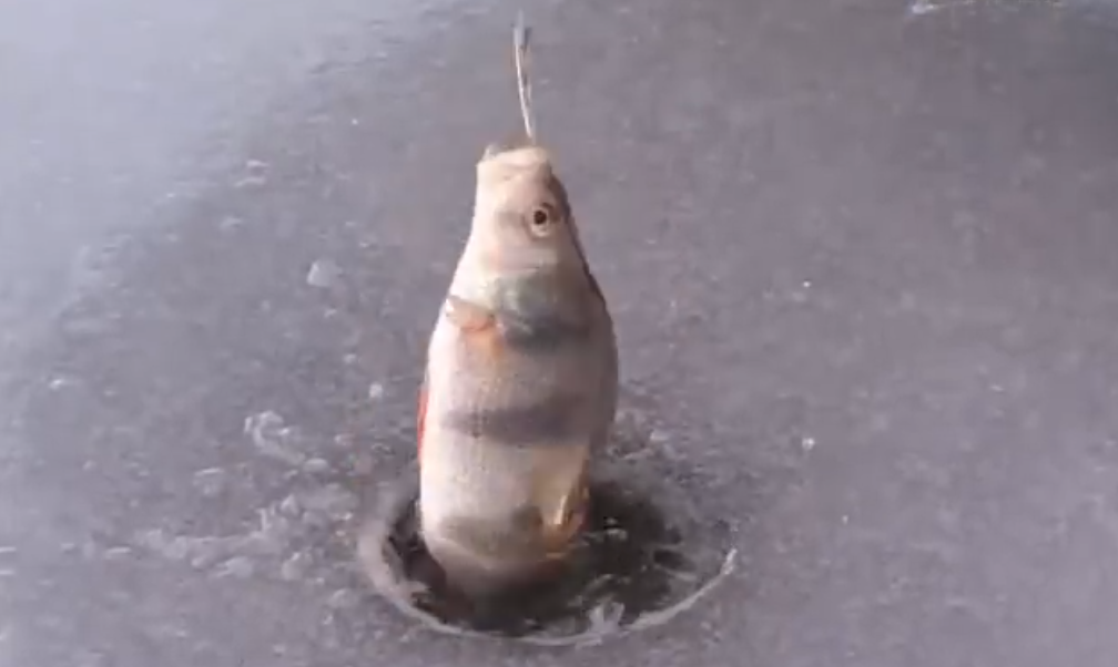 То есть даже если блесна у вас хорошо работает, окунь вроде хочет её укусить, съесть, но он движется, можно сказать, под порами, то есть на максимально возможной для себя скорости 5 мм в секунду, то есть за счёт грудных плавников, то есть хвост у него неподвижен, это хорошо видно, когда мы смотрим в лунку, и он на грудных плавниках подходит к ней и засасывает её стоком воды, и вроде поклёвка активная, но если мы, например, не учитываем это, сделали пять взмахов, окуня нет, побежали дальше, а в это время к вам стремился окунь, он хотел укусить, например, блесну, но просто не успел, поэтому ни в коем случае в глухозимье, когда рыба уже пассивная, ни в коем случае не нужно блеснить, например, сделали 5–10 взмахов и дальше побежали, нужно более долго блеснить, то есть сидеть на лунке по 5 минут, можно даже по 10 минут сидеть на одной лунке и делать повторяемые движения, соберётся окунь один, второй, третий, когда их наберётся критическая масса, например, штук 10, у них появляется пищевая конкуренция, они один за одним просто выхватываете из лунки.