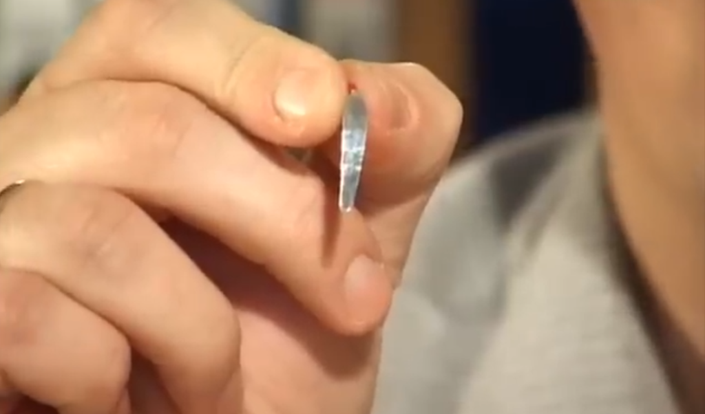 Две данные блесны изготовлены из серебра, то есть подложка у них серебряная, с другой стороны у нас припой расположен, подвесные крючки, и если посмотреть на игру этих блёсен в ёмкости с водой, то оказывается, что эти блёсны они, можно сказать, дрого устойчивые. То есть как их не дёргай, как как ими не играй, они будут выворачиваться из штопора и всегда совершать повторяемые движения.