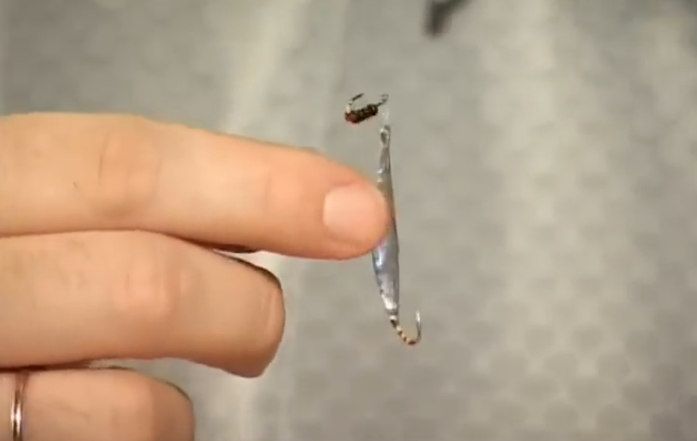 В результате количество поклёвок на такую блесну и на блесну длиной порядка вот 1,7 см. количество поклёвок примерно одинаковое, потому что в данном случае, когда у нас подвесной крючок, у нас окунь часто атакует именно крючок, потому что блесна уже прекратила свою игру, а крючок ещё покачивается и привлекает рыбу.