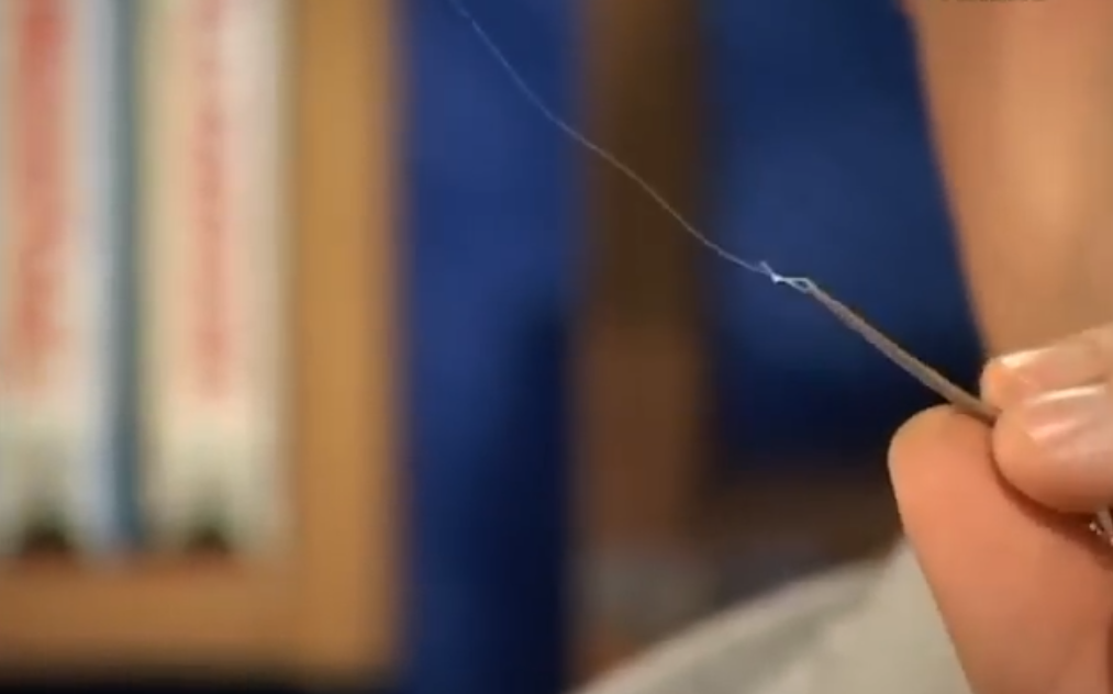 Чем тоньше леску мы используем, тем актуальнее использовать петлю не одинарную, а двойную, мы берём леску, складываем в две реди просовываем в отверстие и привязываем петлю двойную, двойная петля имеет большую надёжность.