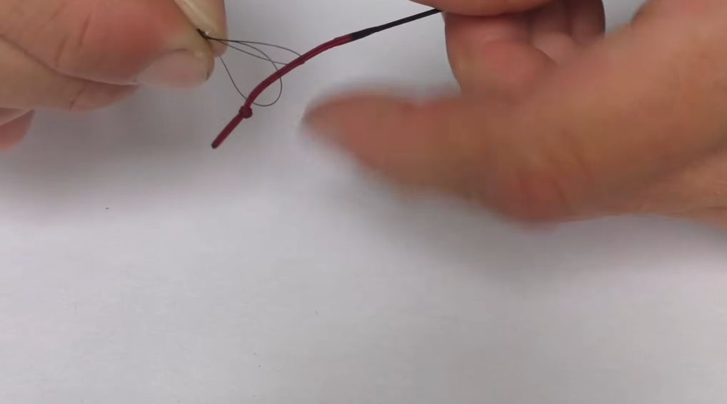 Теперь нужно подготовить петельку на самой оснастке, она будет немного отличаться от той петельки, которую я использовал при классическом коннекторе, и здесь есть небольшая хитрость для того, чтобы саму оснастку потом было легче снимать с этого шнурка.