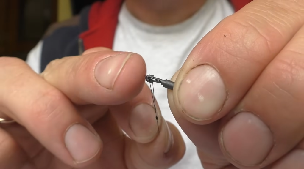 Как работает это крепление? Просто я вот сюда завожу леску, она попала во внутрь этой петельки, сейчас у меня петелька зацепилась за коннектор, я просто закрываю замок коннектора, часть коннектора она подвижна, и она просто наглухо фиксирует оснастку внутри этой пластиковой петли.