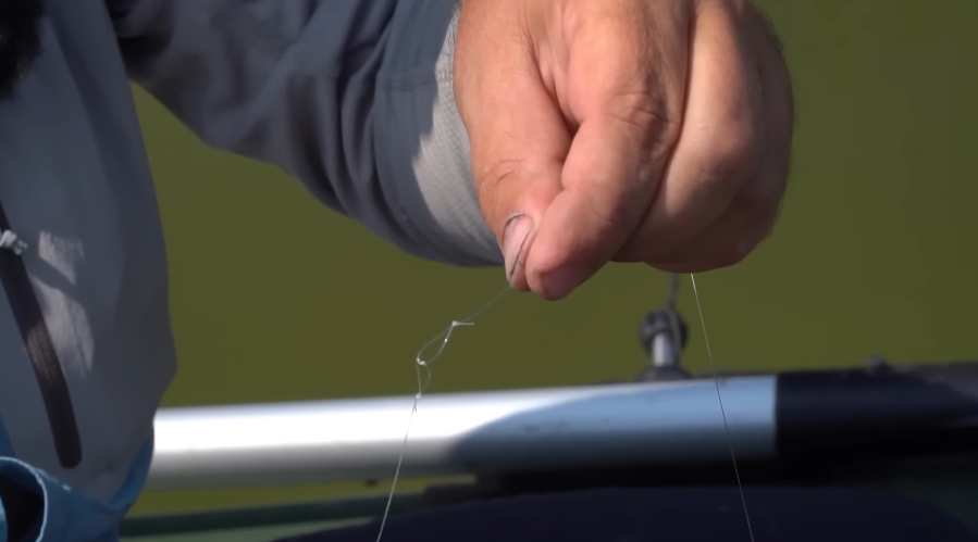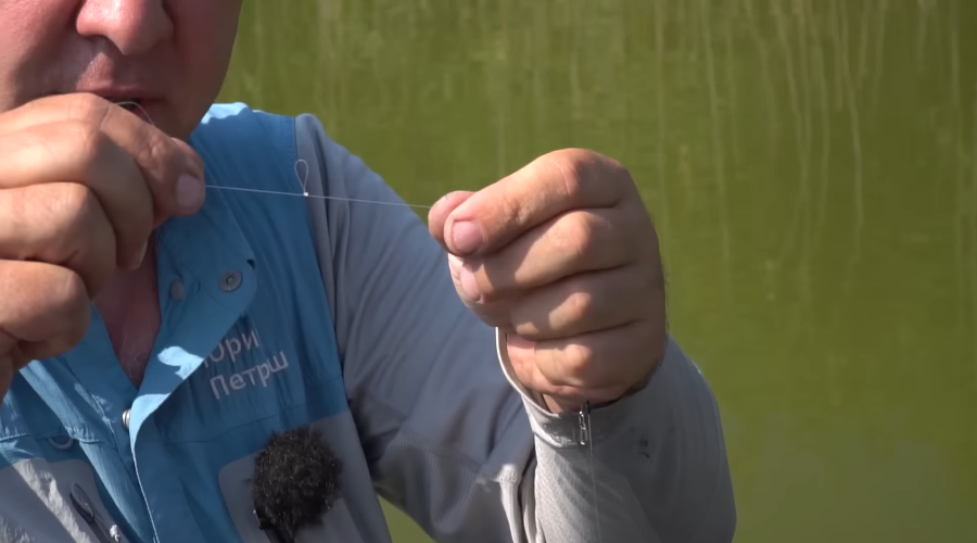 Затем на конце основной лески мы делаем петельку, эту петельку мы делаем для того, чтобы на нее потом одеть поводок.