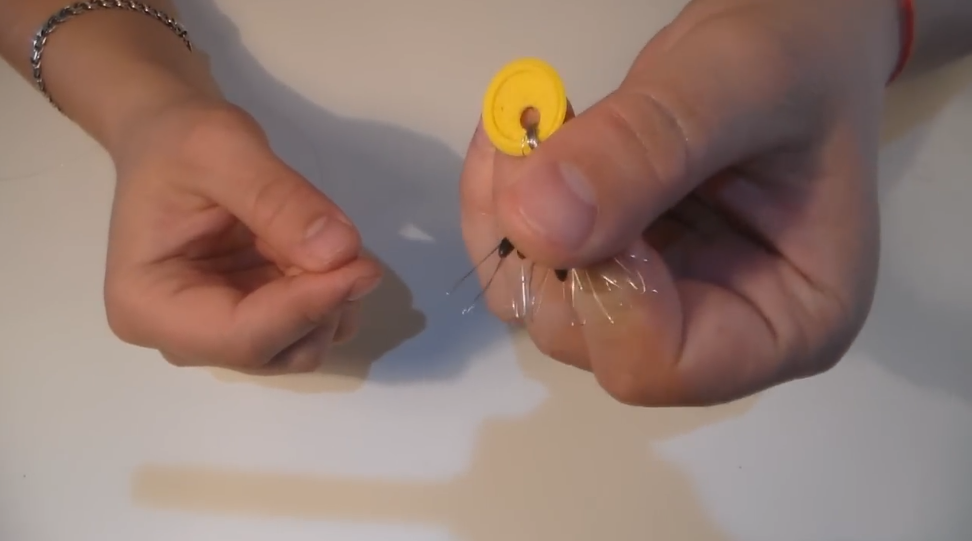 Теперь берём конец лески и надеваем наше грузило, грузило я всегда беру такое, чтобы полностью топило наш поплавок, так как я ловлю со дна, а не с полводы.